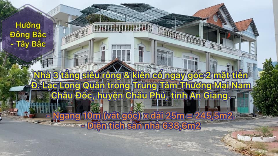 Cần bán nhà 3 tầng + sân thượng siêu rộng & kiên cố ngay góc 2 mặt tiền Đ. Lạc Long Quân trong Trung Tâm Thương Mại Nam Châu Đốc, huyện Châu Phú, tỉnh An Giang.