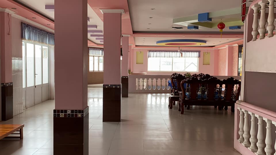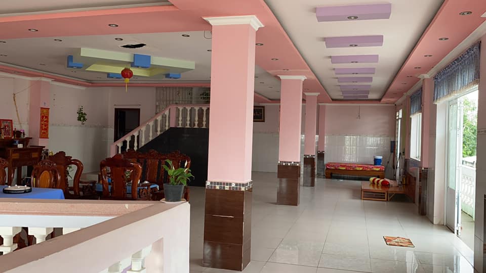1. Tầng trệt phòng khách siêu rộng rãi đậu vài chiếc ô tô tải là chuyện bình thường, bếp rộng, nhà vệ sinh rộng. Vách tường ốp gạch, trần la phông kiểu hiện đại.