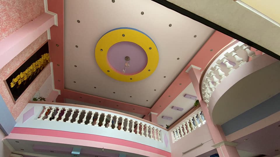 2. Tầng 2 (lửng) gồm 1 phòng nhỏ còn lại là phòng khách lớn, ban công quanh tầng. Vách tường ốp gạch, trần la phông kiểu hiện đại.