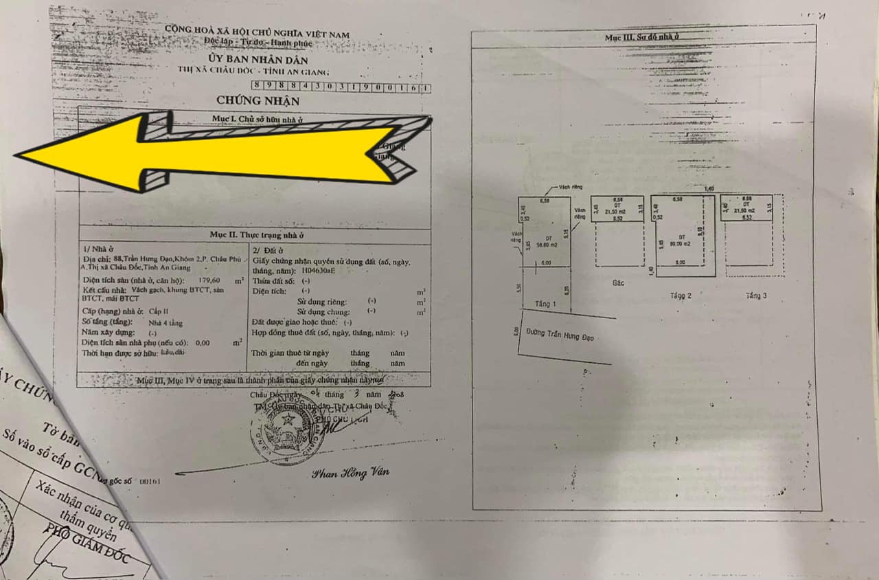 Cần bán nhà 4 tầng mái thái mặt tiền Đ. Trần Hưng Đạo, thành phố Châu Đốc, tỉnh An Giang.