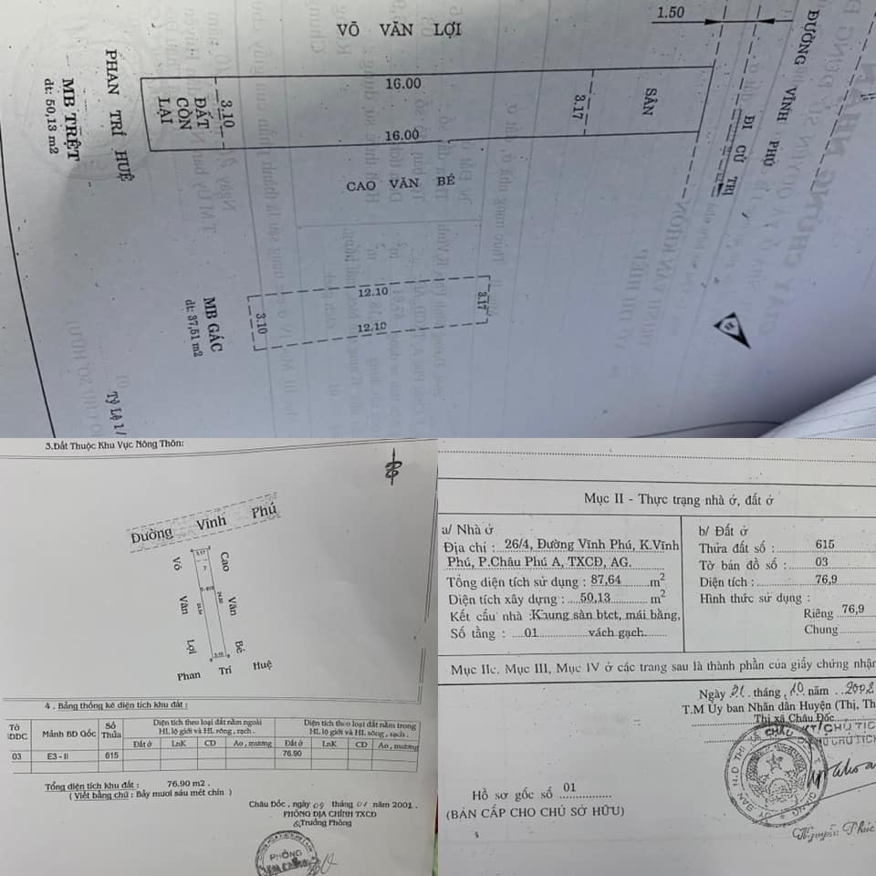– Diện tích đất ngang 3,17m (hậu 3,10m) x dài 24,50m (thực tế 26m) = 77m2. Nhà đã hợp thức hoá có sổ nhà.