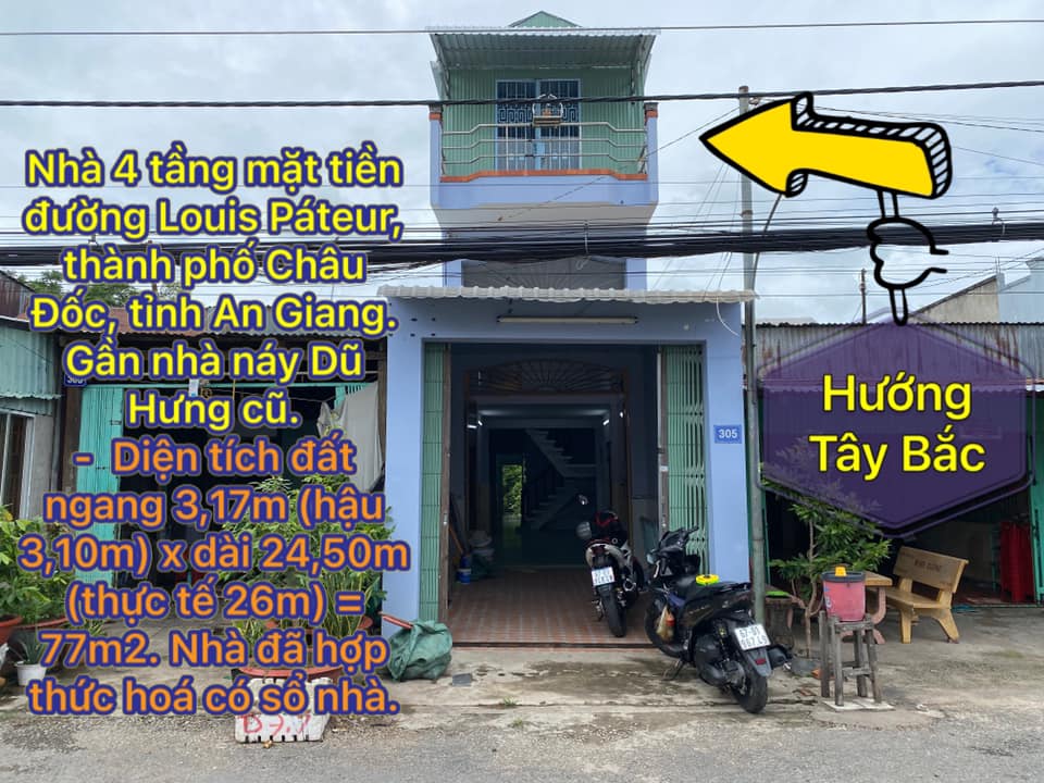 Cần bán nhà 4 tầng mặt tiền đường Louis Pasteur, thành phố Châu Đốc, tỉnh An Giang. Gần nhà máy Dũ Hưng cũ.