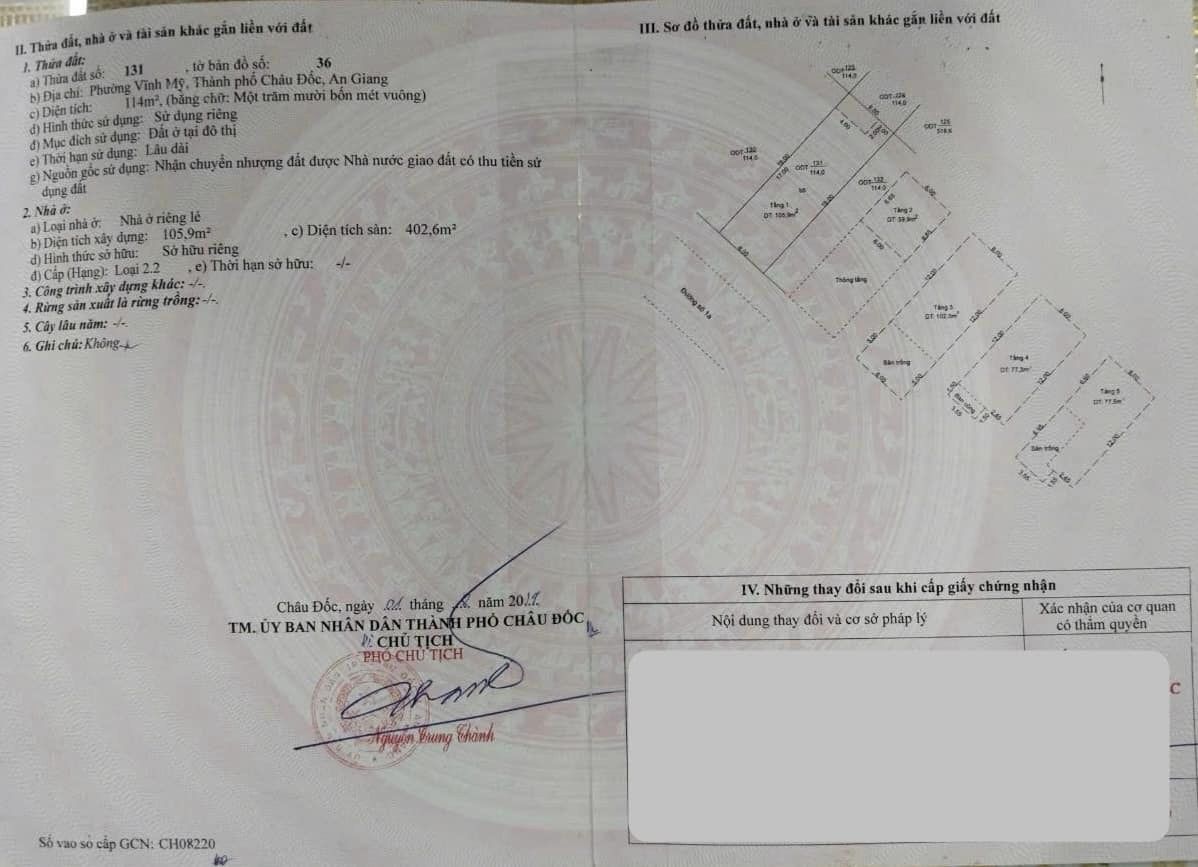 – Diện tích sàn 402,6 m2. Đã có sổ nhà hoàn công.