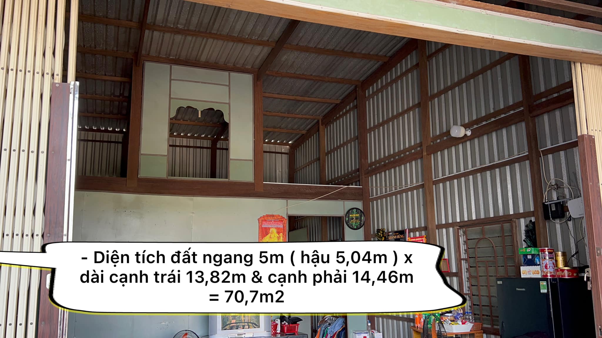 – Diện tích đất ngang 5m ( hậu 5,04m ) x dài cạnh trái 13,82m & cạnh phải 14,46m = 70,7m2