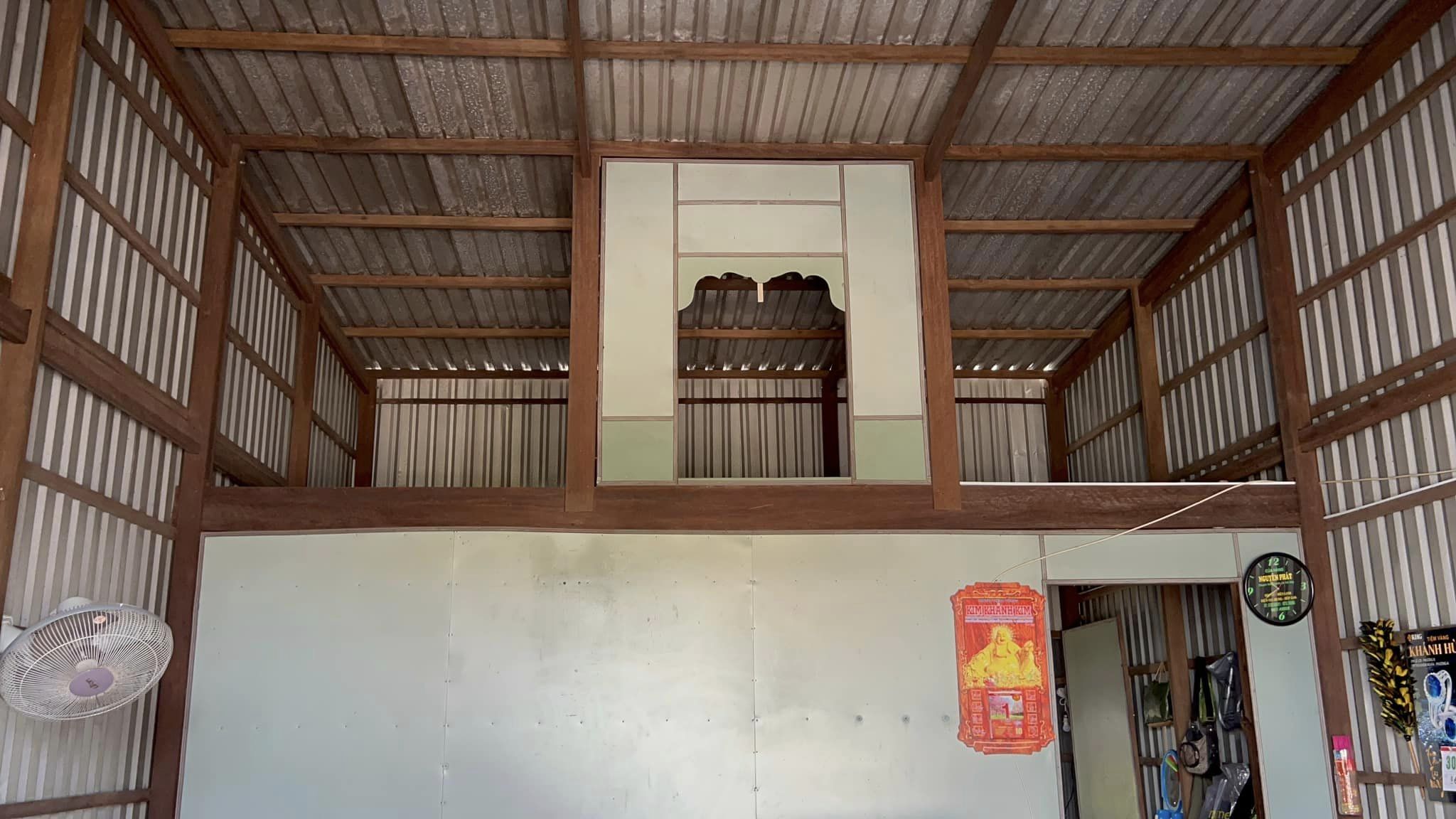 – Nhà sàn gỗ vách mái tole còn khá tốt