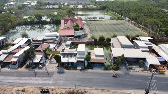 ” SIÊU PHẨM” Cần bán nhà cấp IIIa + 3 sân đá banh mini + 2 hầm nước lớn mặt tiền QL 91, xã Mỹ Đức. Ngang 5,3m vào 25m nở bụng 70m, dài 162m với tổng diện tích 10.087,5 m2.