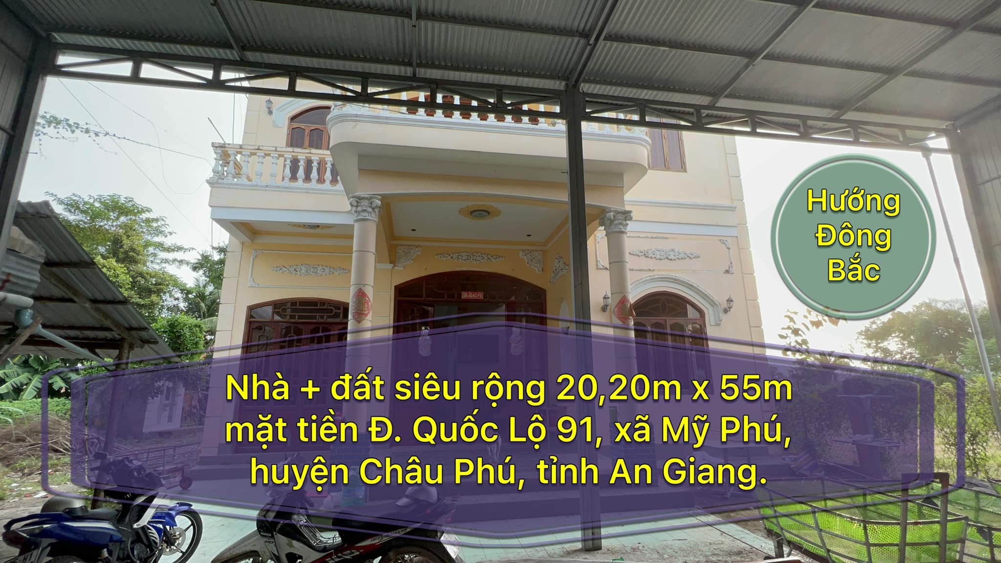 Cần bán nhà + đất siêu rộng 20,20m x 55m mặt tiền Đ. Quốc Lộ 91, xã Mỹ Phú, huyện Châu Phú, tỉnh An Giang. Cách UBND xã Mỹ Phú chỉ 50m.