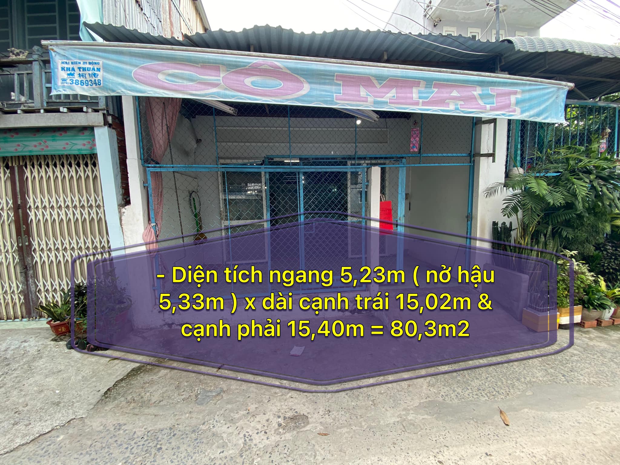 – Diện tích ngang 5,23m ( nở hậu 5,33m ) x dài cạnh trái 15,02m & cạnh phải 15,40m = 80,3m2