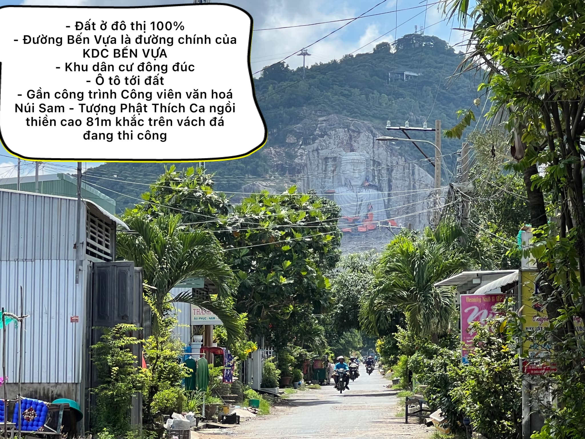 – Gần công trình Công viên văn hoá Núi Sam – Tượng Phật Thích Ca ngồi thiền cao 81m khắc trên vách đá đang thi công