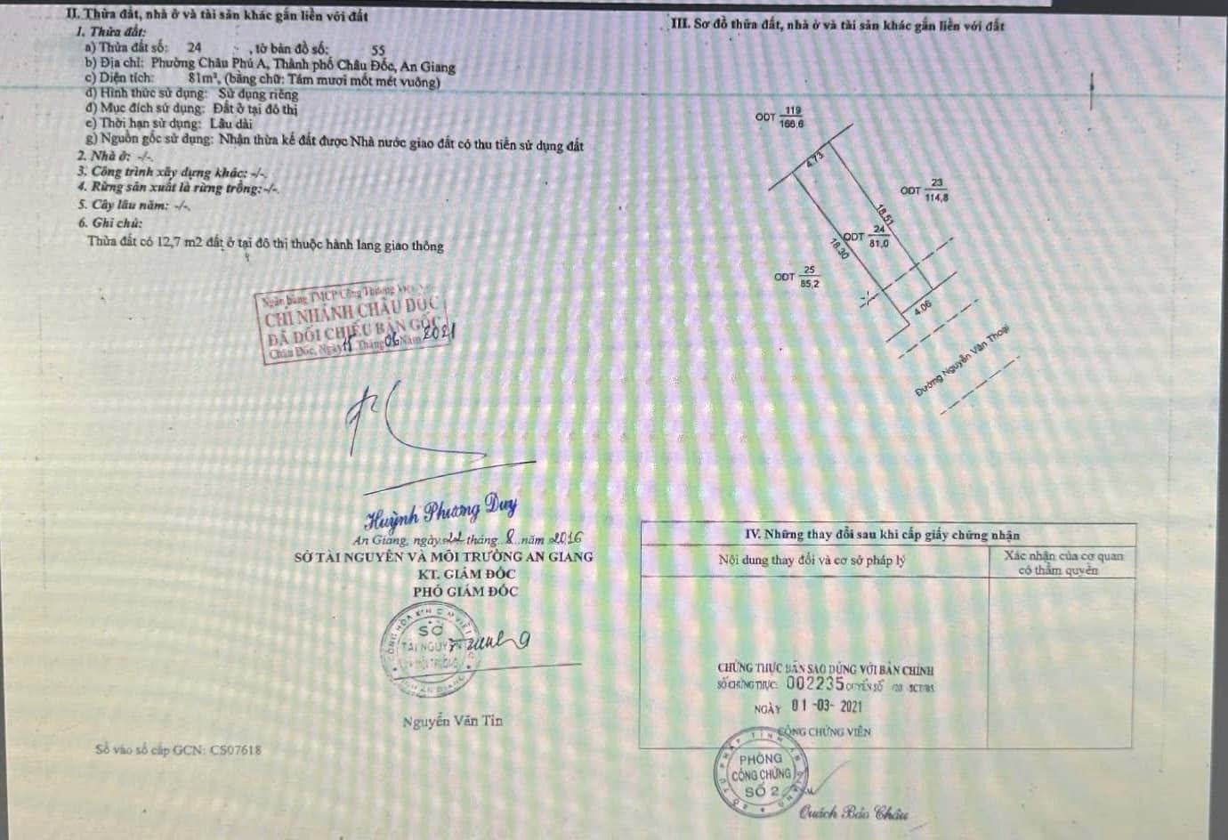 Cần bán nhà mặt tiền Đ. Nguyễn Văn Thoại, thành phố Châu Đốc, tỉnh An Giang.