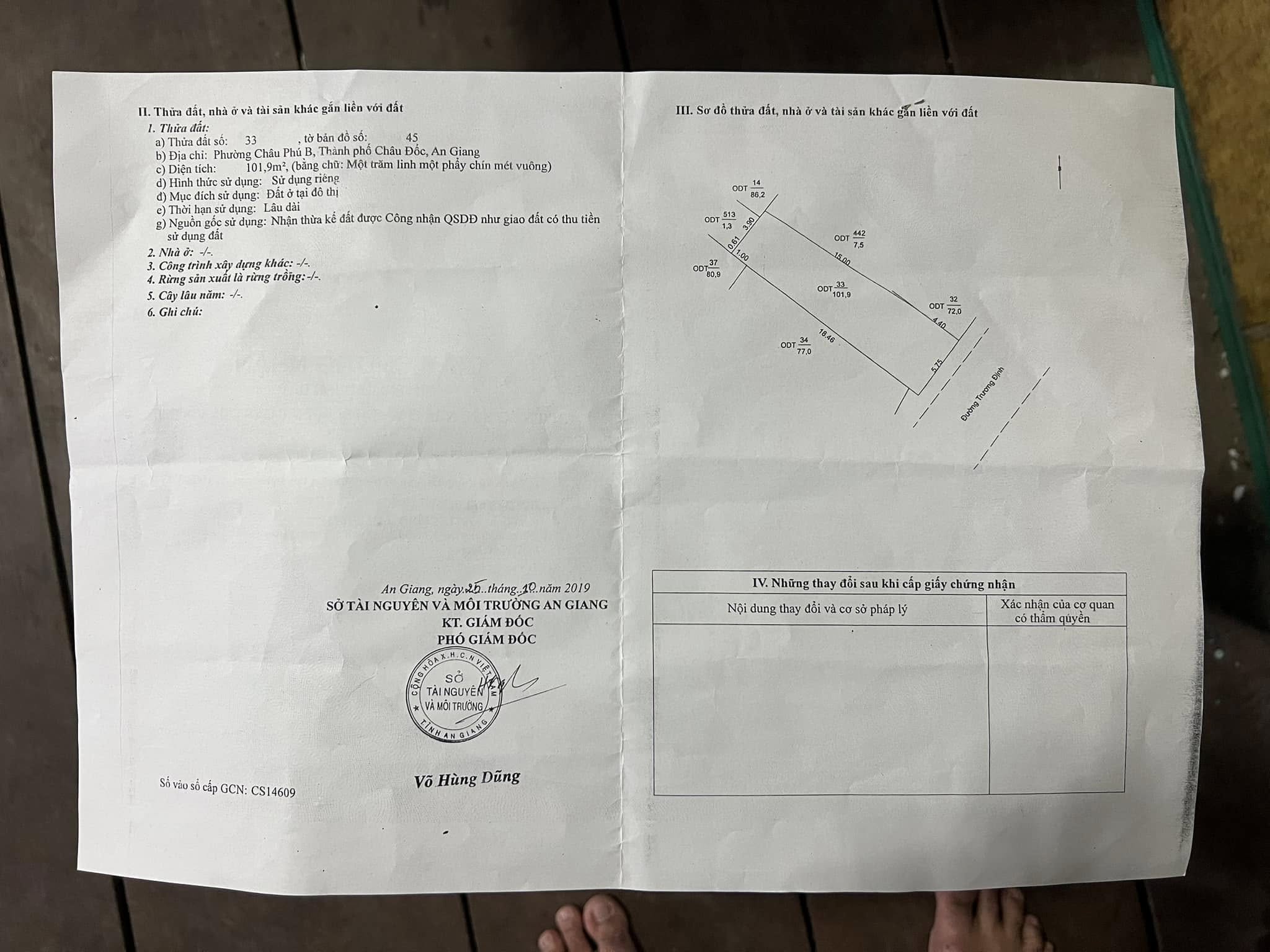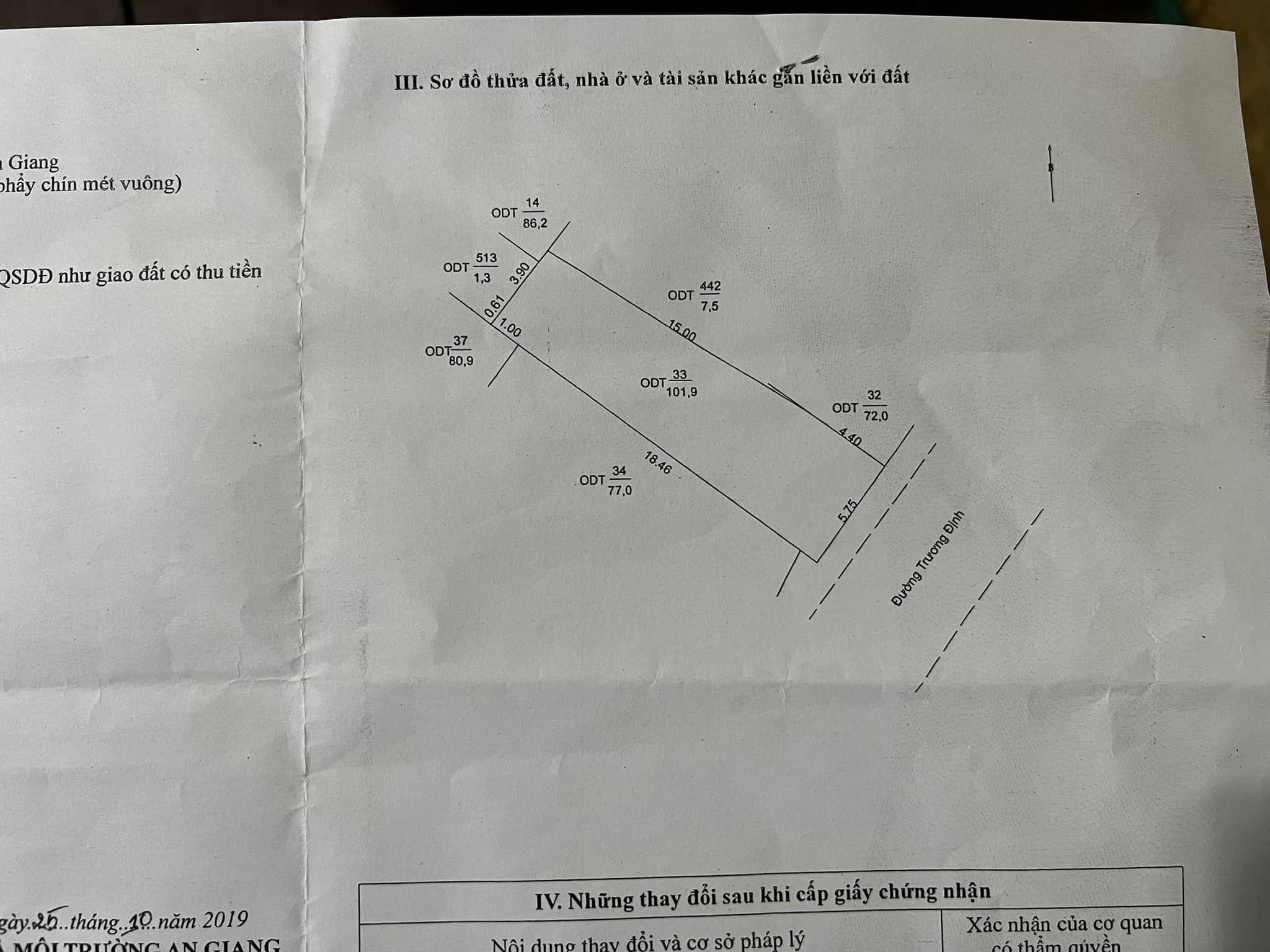 – Mặt tiền ngang 5,75m ( hậu 4,51 ) x dài 19,4m = 101,9m2 Đất ở đô thị