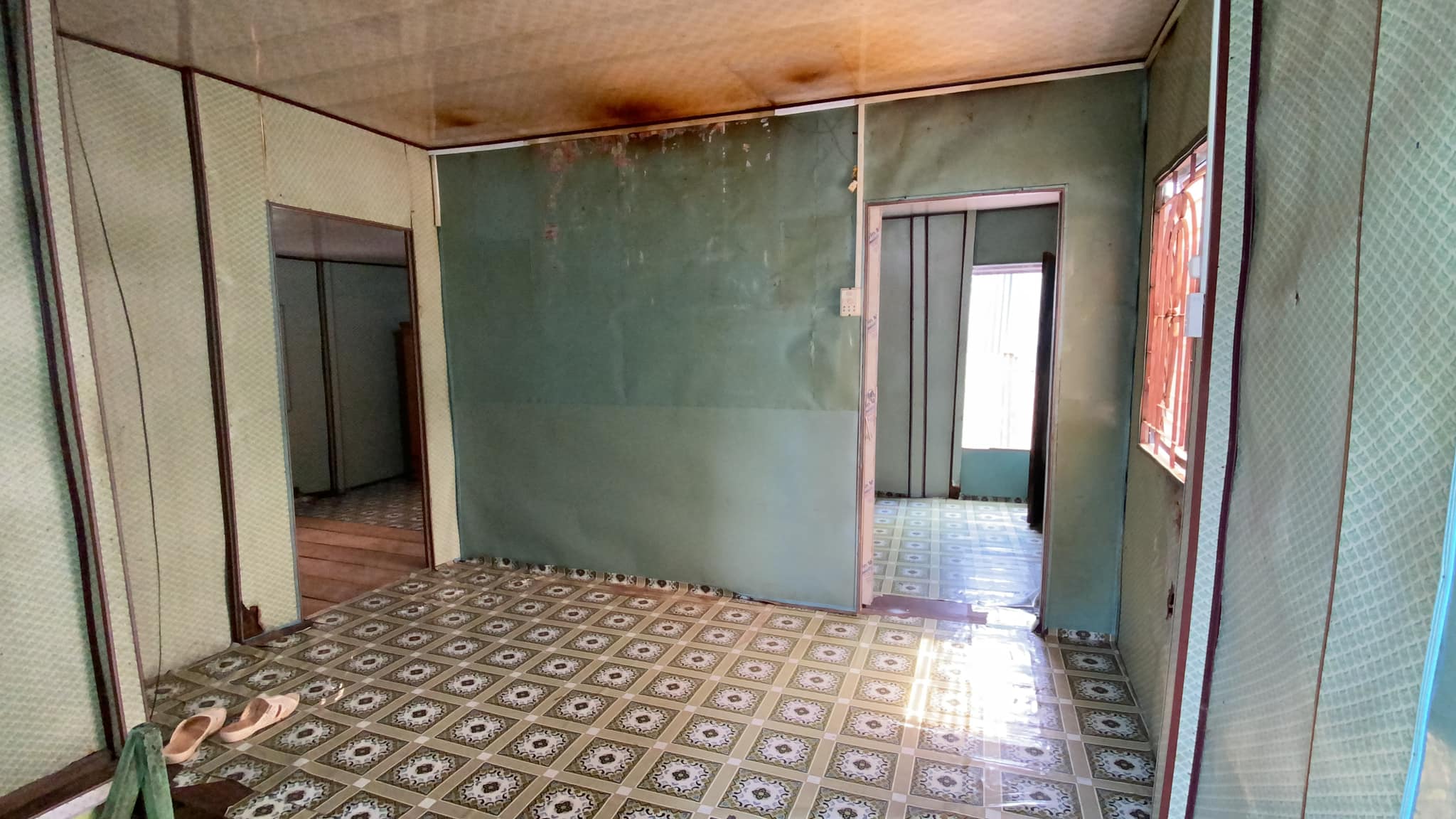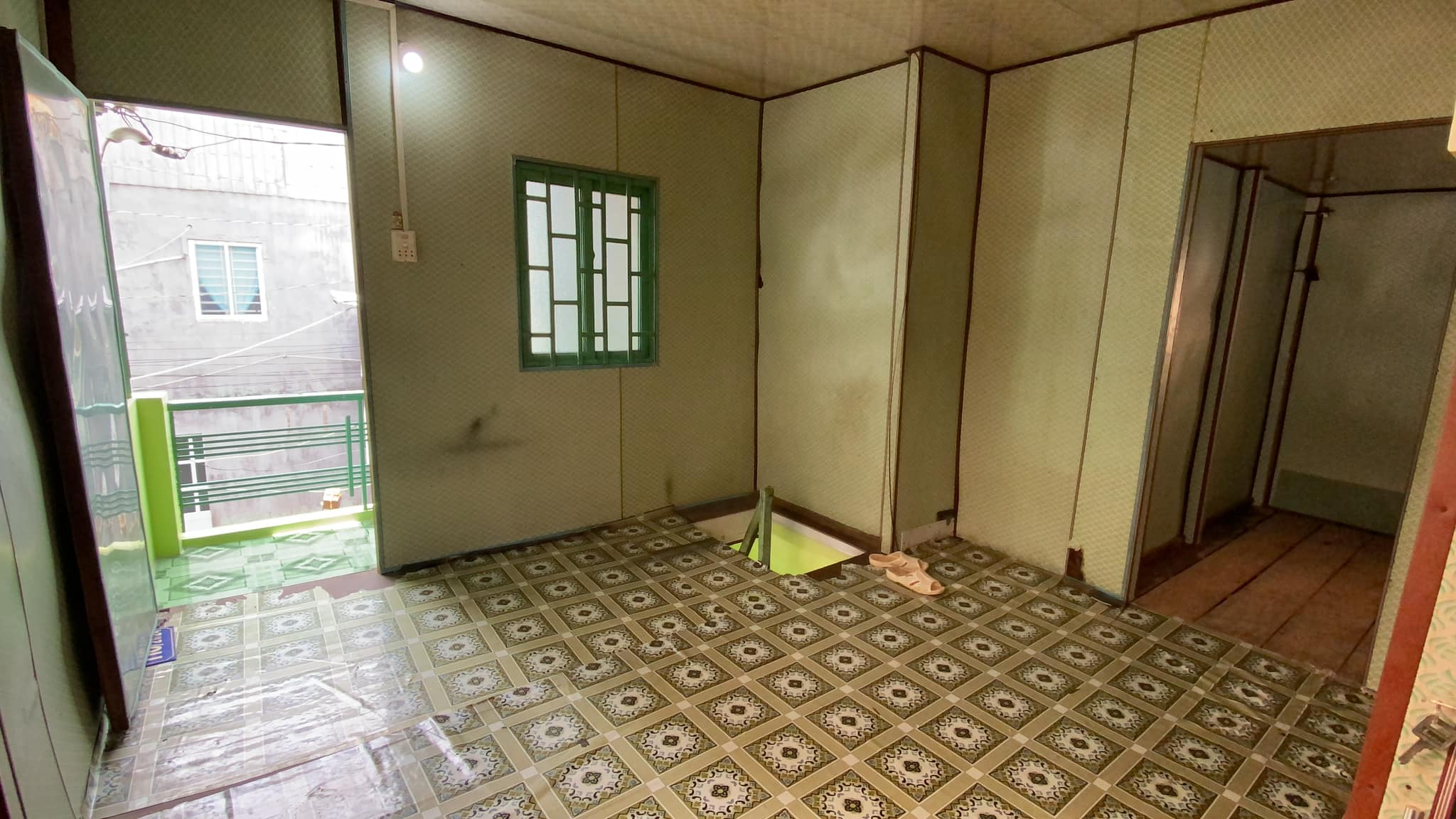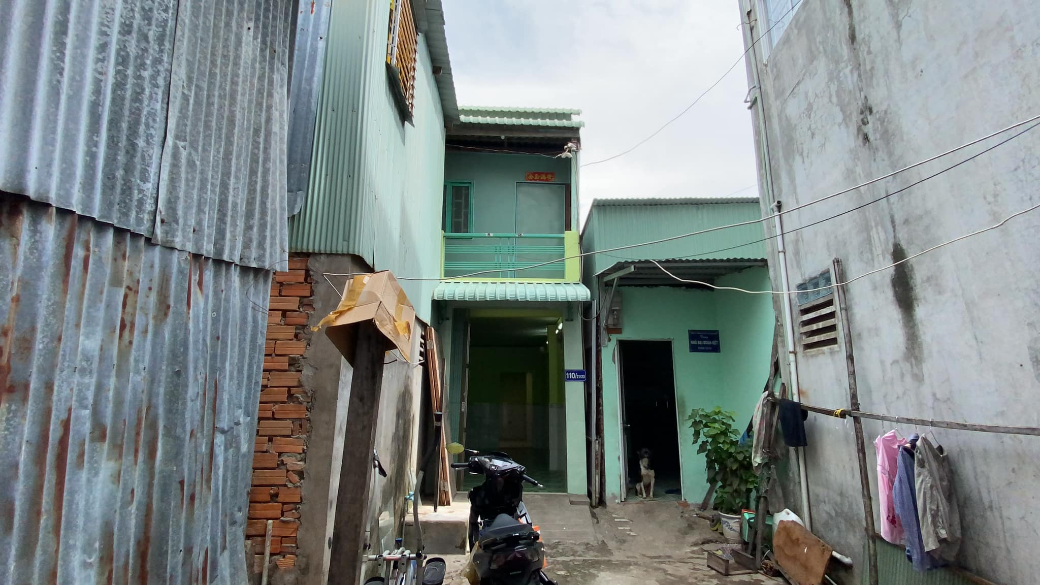 2. Lầu sàn gỗ, vách + mái tole gồm 2 phòng ngủ và ban công.