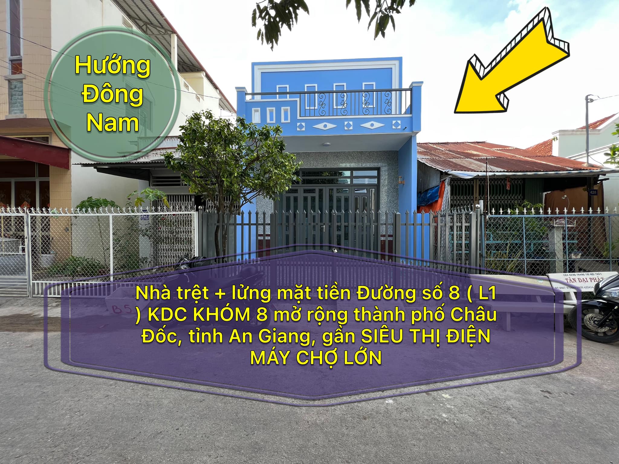 Cần bán nhà trệt + lửng mặt tiền Đường số 8 ( L1 ) KDC KHÓM 8 mở rộng thành phố Châu Đốc, tỉnh An Giang, gần SIÊU THỊ ĐIỆN MÁY CHỢ LỚN, cách Đ. Tân Lộ Kiều Lương 150m.