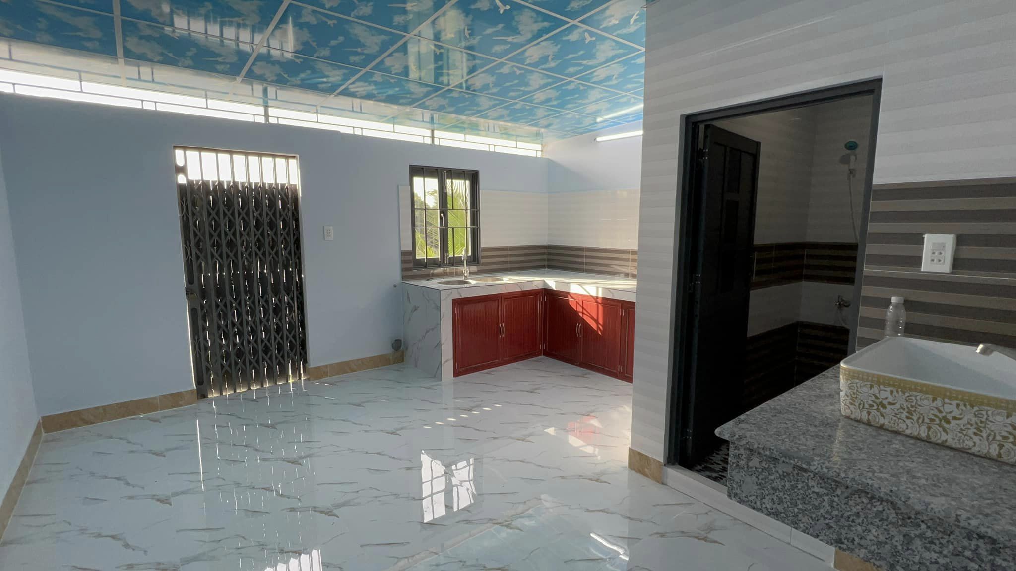 1. Tầng trệt gồm sân, phòng khách, phòng ngủ có toilet riêng, bếp + toilet chung. Sàn lót gạch vách tường, trần la phônng kiểu đèn hiện đại.