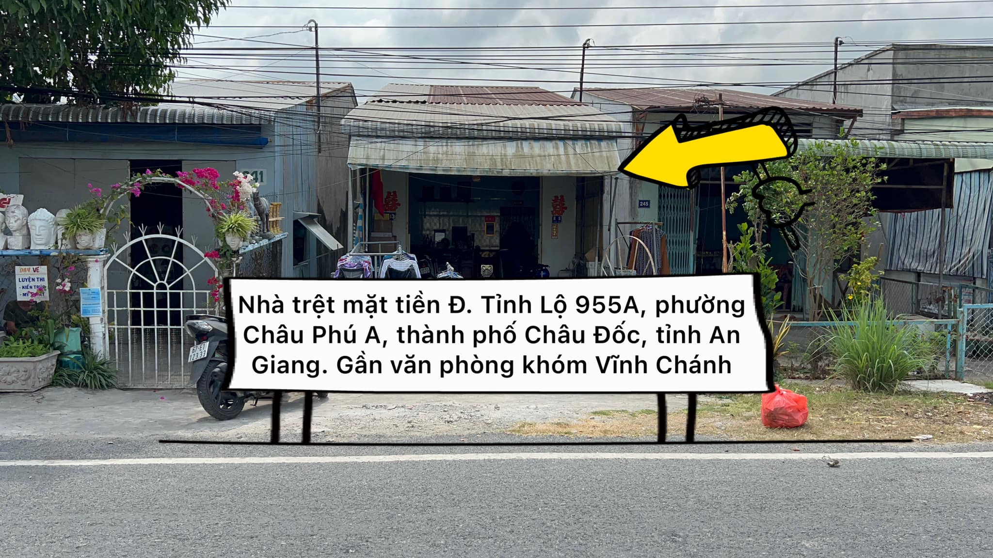 Cần bán nhà trệt mặt tiền Đ. Tỉnh Lộ 955A, phường Châu Phú A, thành phố Châu Đốc, tỉnh An Giang. Gần văn phòng khóm Vĩnh Chánh