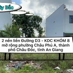 Cần bán 2 nền liền Đường D3 – KDC KHÓM 8 mở rộng phường Châu Phú A, thành phố Châu Đốc, tỉnh An Giang. Cách SIÊU THỊ ĐIỆN ..