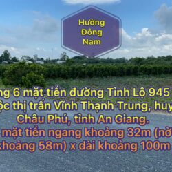 Cần bán 6 công 6 mặt tiền đường Tỉnh Lộ 945 mới thuộc thị trấn Vĩnh Thạnh Trung, huyện Châu Phú, tỉnh An Giang. Cách quốc lộ ..