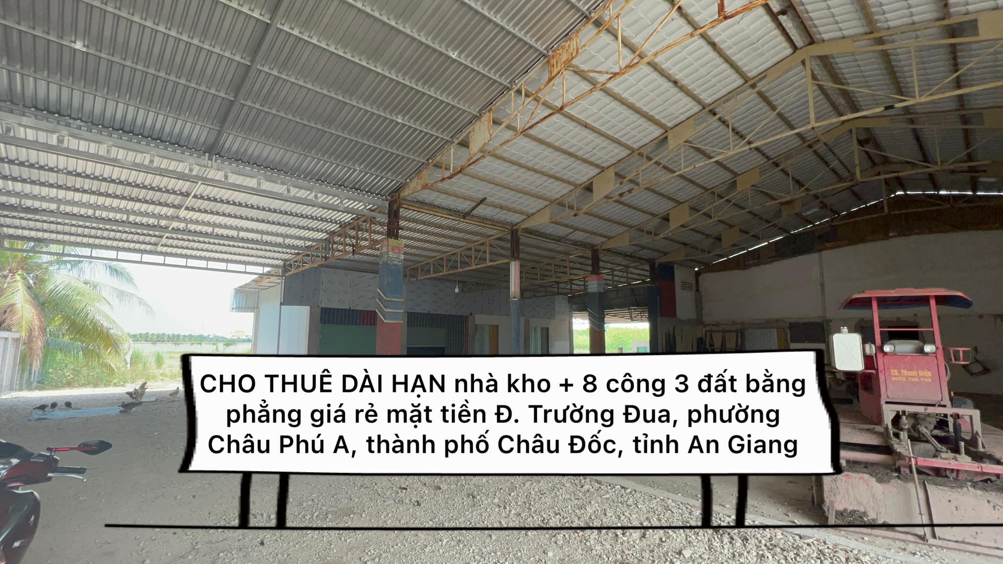 CHO THUÊ DÀI HẠN nhà kho + 8 công 3 đất bằng phẳng giá rẻ mặt tiền Đ. Trường Đua, phường Châu Phú A, thành phố Châu Đốc, tỉnh An Giang