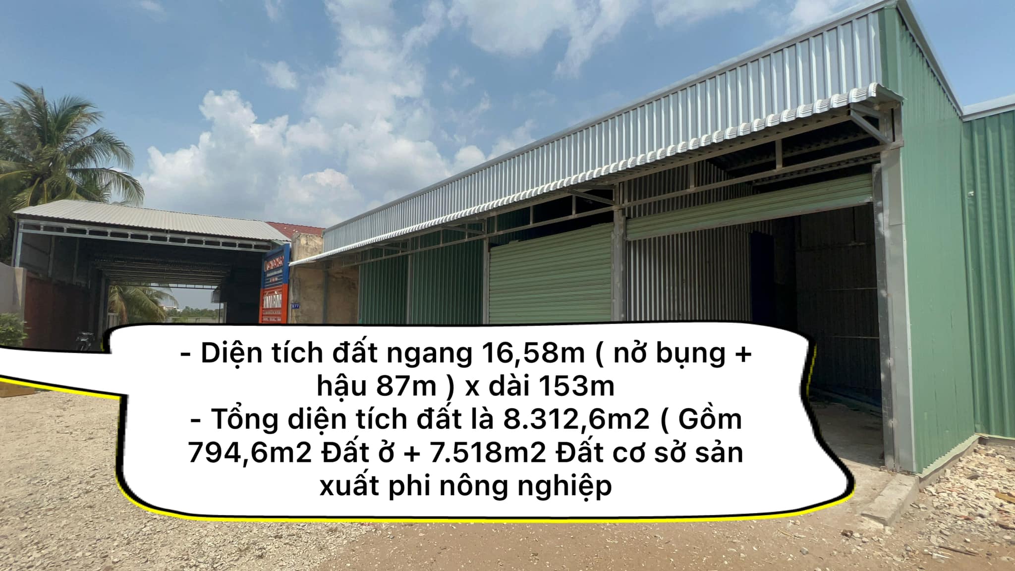 – Tổng diện tích đất là 8.312,6m2 ( Gồm 794,6m2 Đất ở + 7.518m2 Đất cơ sở sản xuất phi nông nghiệp