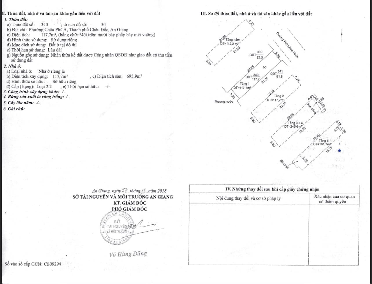– Tổng Diện tích sàn nhà 5 tầng là 695,39m2. Nhà đã hợp thức hoá sổ nhà hoàn công
