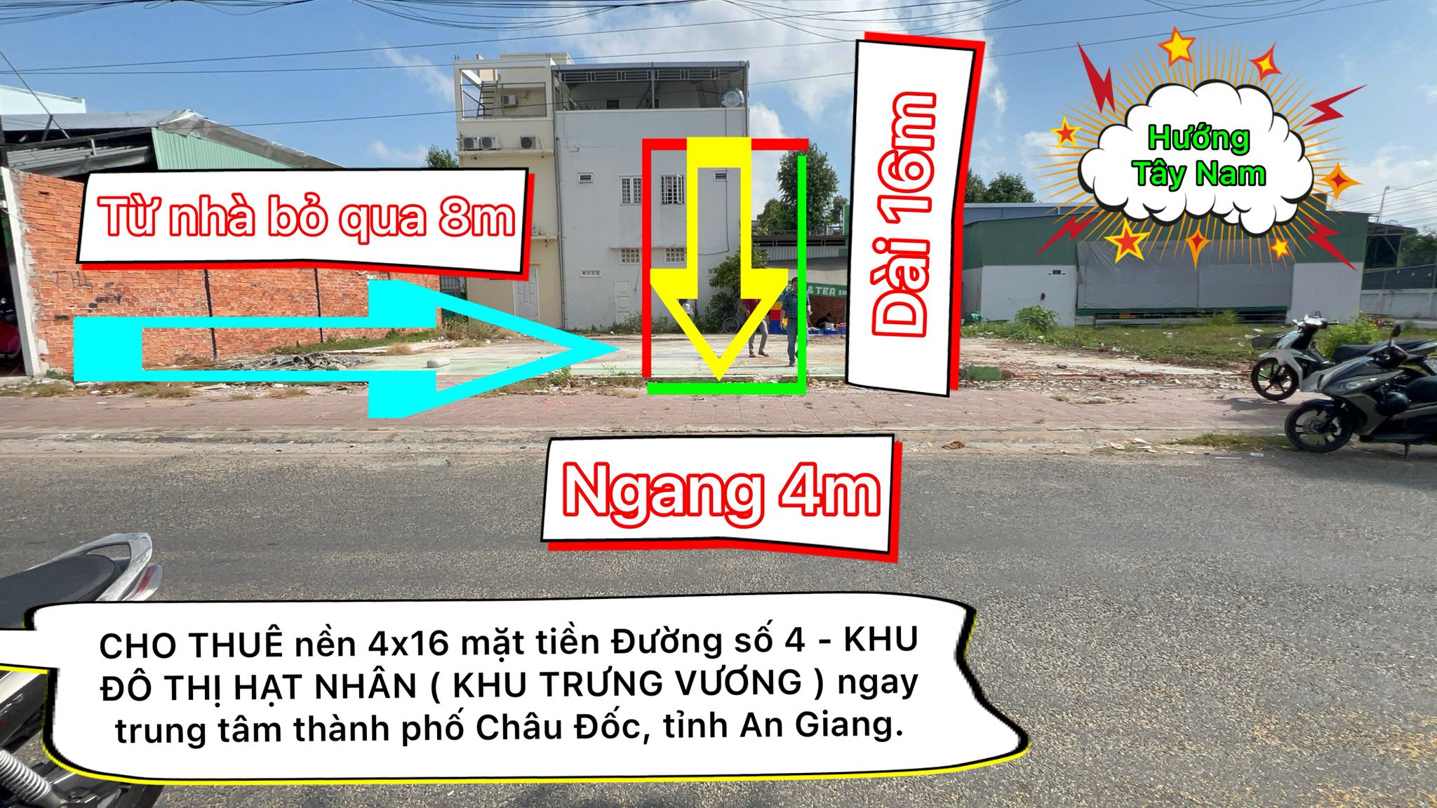 CHO THUÊ nền 4×16 mặt tiền Đường số 4 – KHU ĐÔ THỊ HẠT NHÂN ( KHU TRƯNG VƯƠNG ) ngay trung tâm thành phố Châu Đốc, tỉnh An Giang.