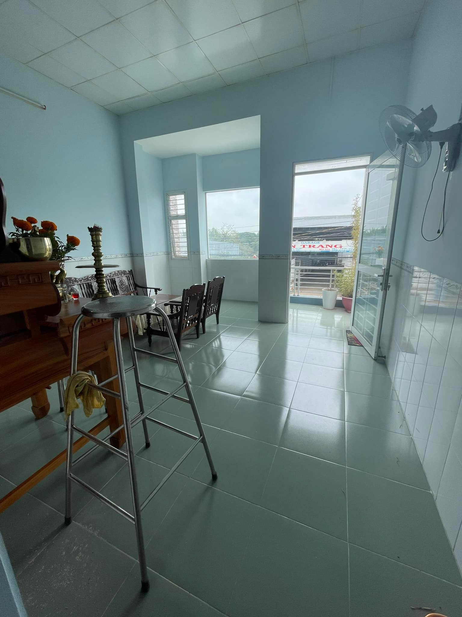 1. Tầng trệt gồm phòng khách lớn đậu được ô tô, phòng ngủ có toilet riêng, bếp, toilet chung. Sàn lót gạch, vách tường ốp gạch.