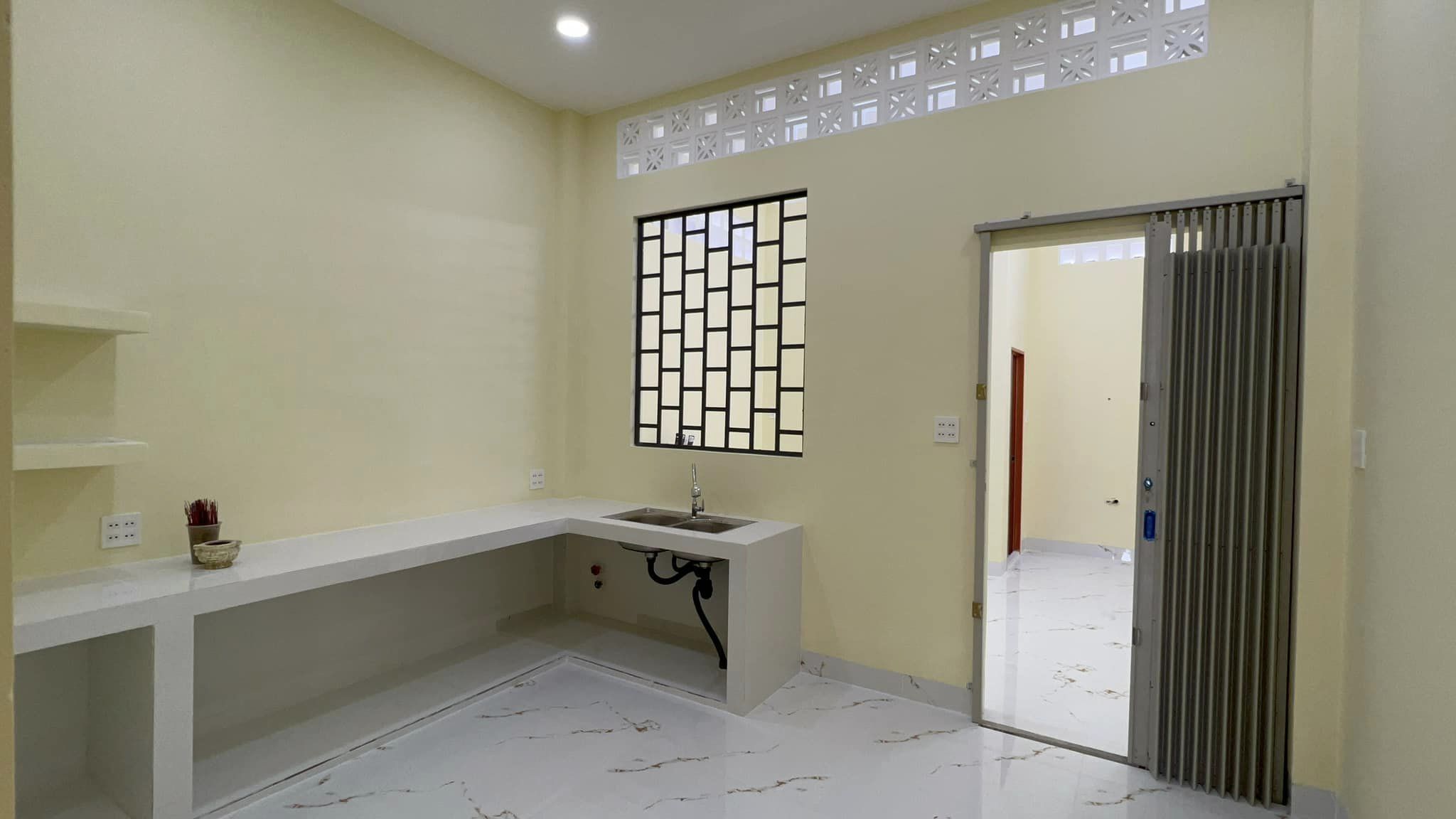 – Nhà thiết kế phòng khách rộng 4×7, 1 phòng ngủ có toilet riêng, bếp, sàn nước, toilet.