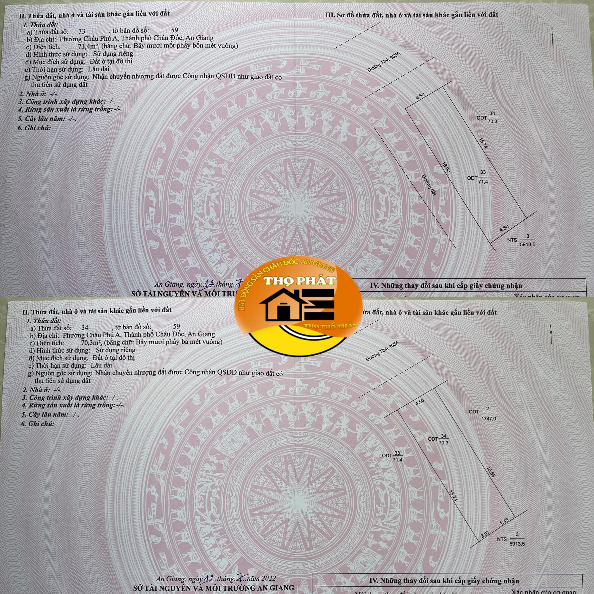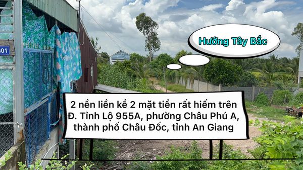 Cần bán 2 nền liền kề 2 mặt tiền rất hiếm trên Đ. Tỉnh Lộ 955A, phường Châu Phú A, thành phố Châu Đốc, tỉnh An Giang. Cách Nhà Máy Dũ Hưng 170m.