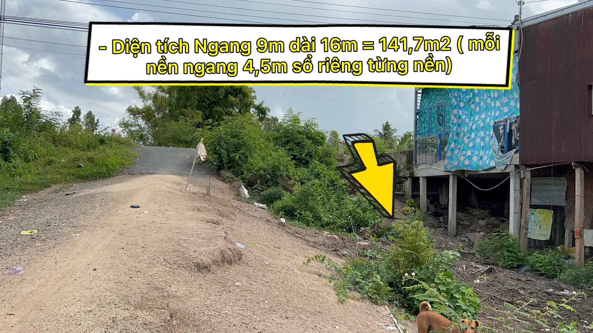 – Diện tích Ngang 9m dài 16m = 141,7m2 ( mỗi nền ngang 4,5m sổ riêng từng nền)