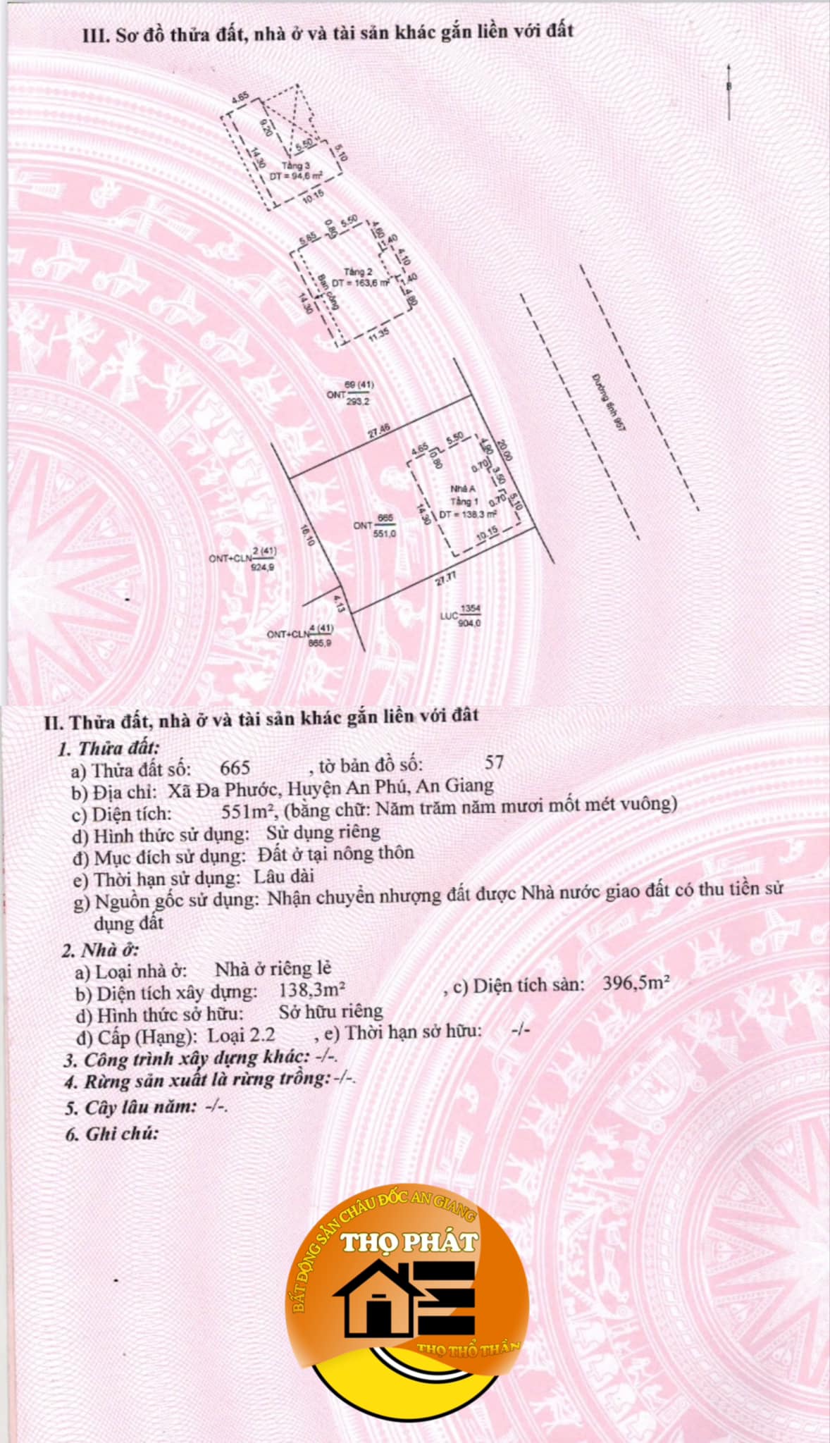 – Tổng diện tích đất theo sổ 551m2 Thổ cư 100%