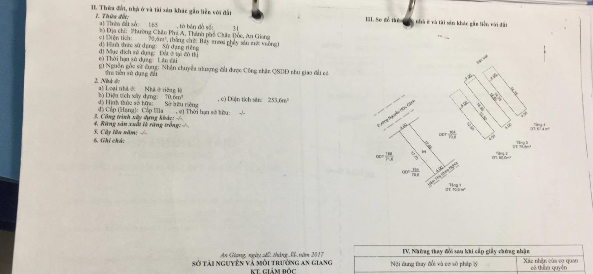 – Diện tích đất ngang 4m x dài 17,7m = 70,6m2 Đất ở đô thị