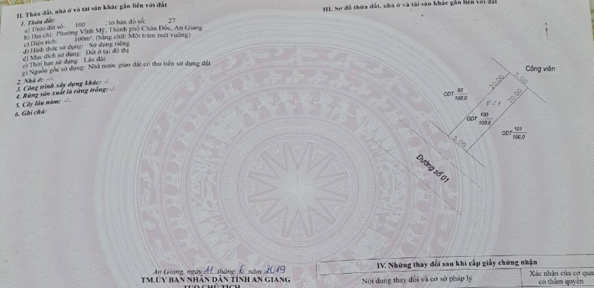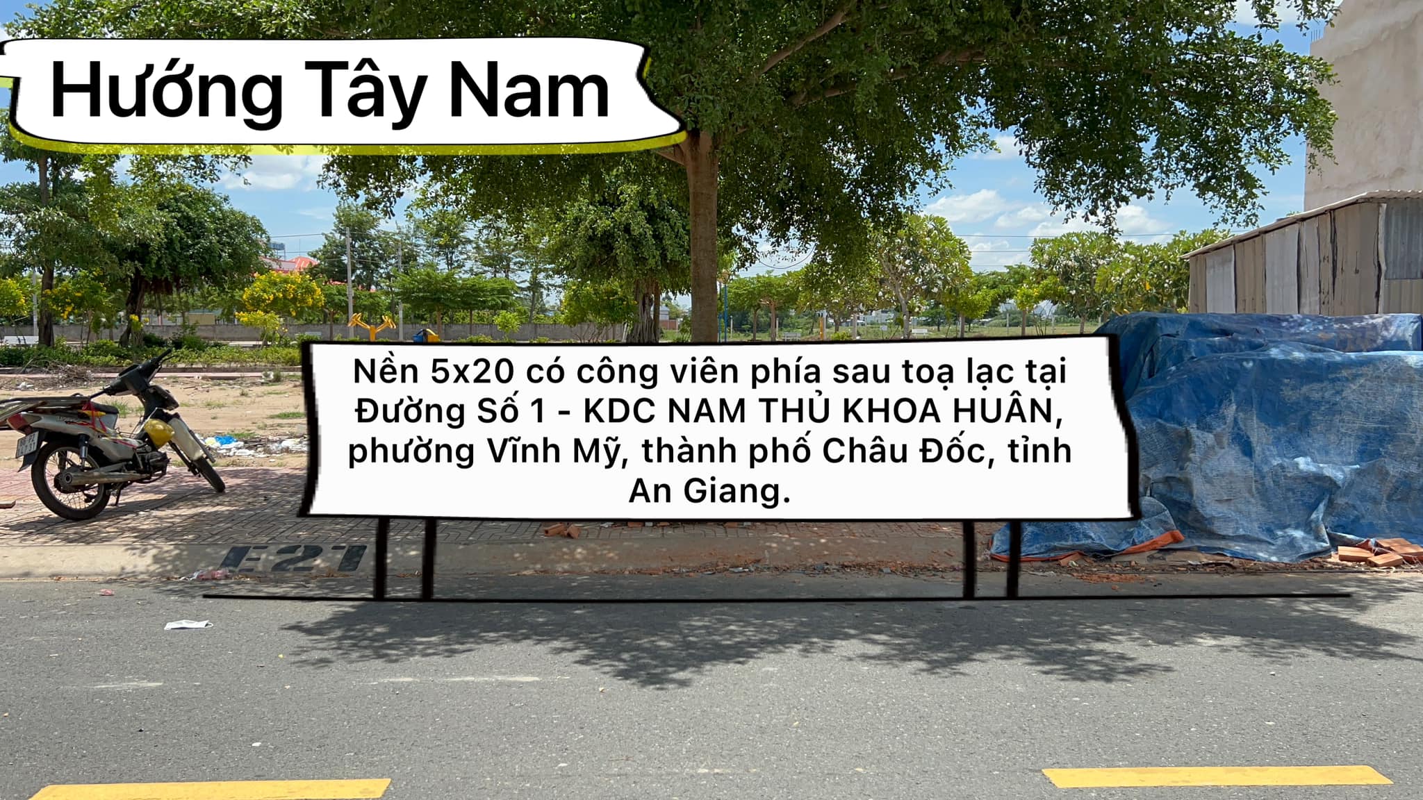 Cần bán nền 5×20 có công viên phía sau toạ lạc tại Đường Số 1 – KDC NAM THỦ KHOA HUÂN, phường Vĩnh Mỹ, thành phố Châu Đốc, tỉnh An Giang. Hướng Tây Nam