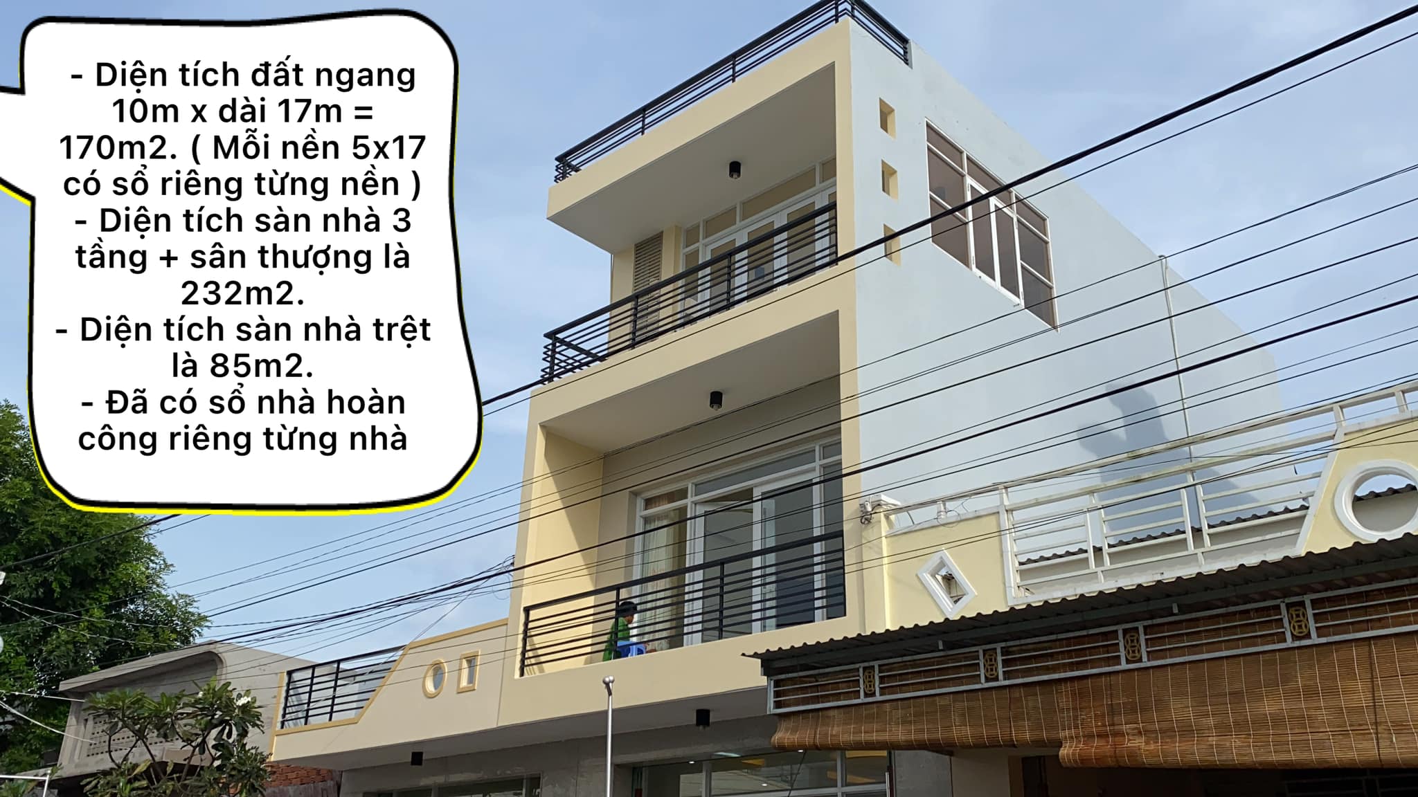 – Diện tích đất ngang 10m x dài 17m = 170m2. ( Mỗi nền 5×17 có sổ riêng từng nền )