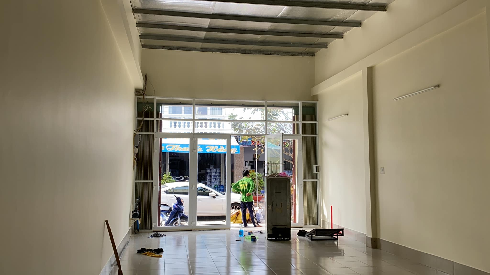 2. Căn thứ hai là Nhà 1 tầng gồm phòng khách rộng đậu được ô tô, phòng ngủ, toilet, hẻm thông hành. Vách tường, sàn lót gạch, trần tấm cách nhiệt & mái tole.