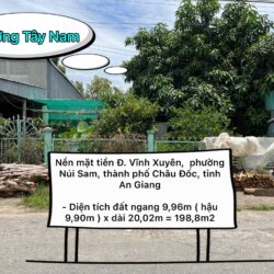 Cần bán 18 công 3 Đất mặt tiền đường Lê Đại Cương, Tp Châu Đốc, An Giang. – Mặt tiền ngang khoảng 60m, dài khoảng 220m. – ..