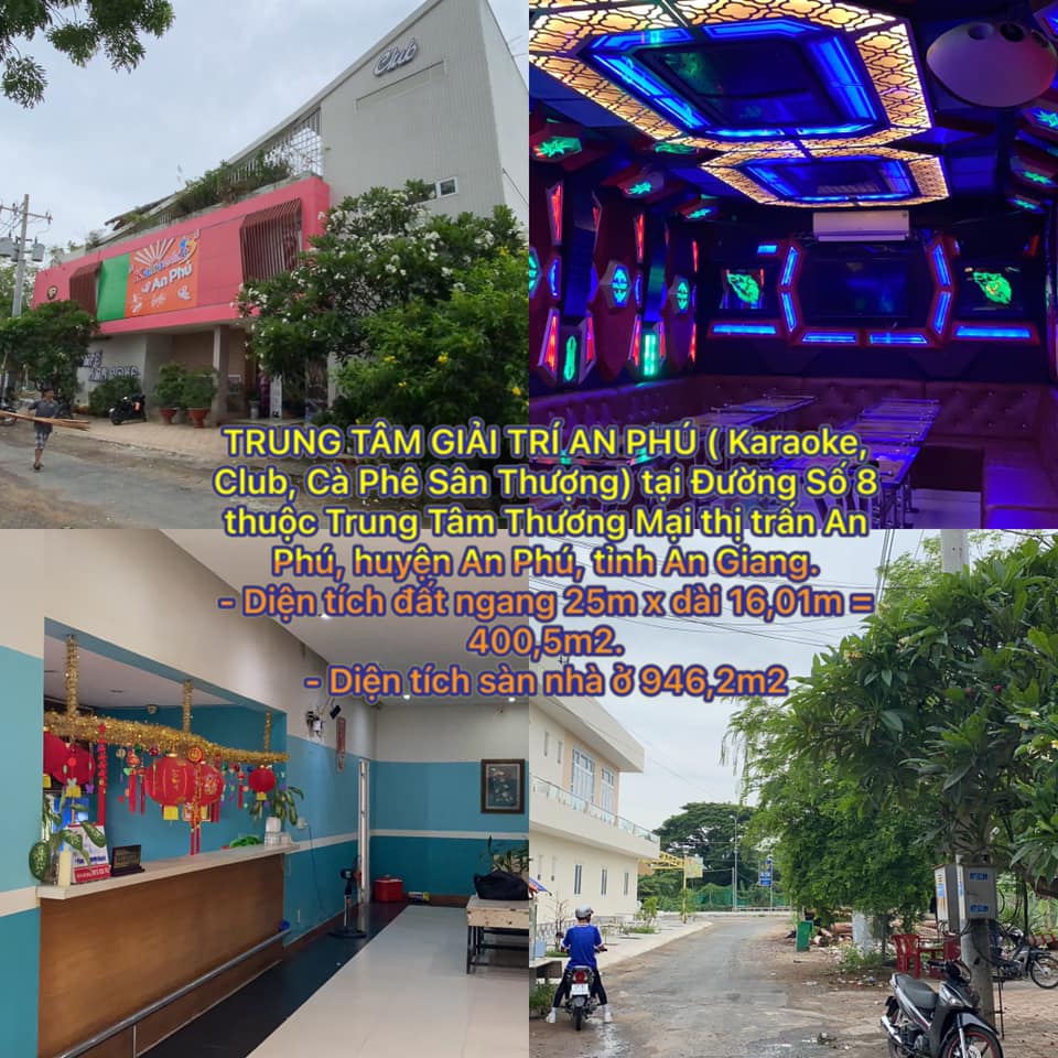 “VIP” Do không có thời gian quản lý nên bán lại căn nhà TRUNG TÂM GIẢI TRÍ AN PHÚ ( Karaoke, Club, Cà Phê Sân Thượng) tại Đường Số 8 thuộc Trung Tâm Thương Mại thị trấn An Phú, huyện An Phú, tỉnh An Giang.